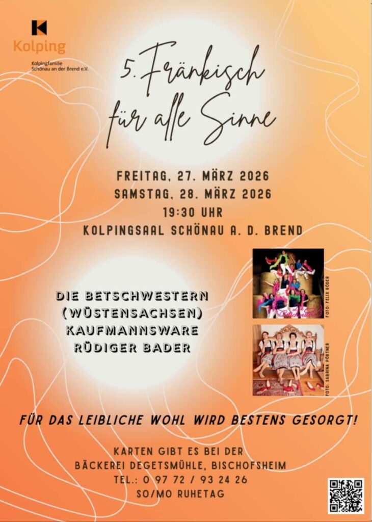 Mitwirkende: Betschwestern (Wüstensachsen) & Rüdiger Bader (Burgwallbach)Kartenvorverkauf: Bäckerei Degetsmühle (09772 – 932624)